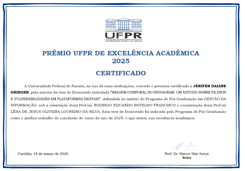 Jenifer Daiane Grieger has been awarded the Best PhD Thesis of 2025 by the Graduate Program in Information Management at the Federal University of Paraná, Brazil. The distinction was granted […]